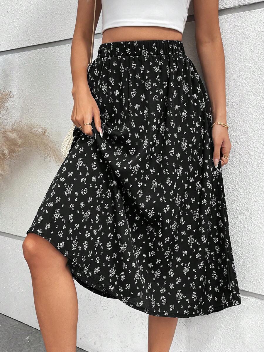 SHEIN Frenchy Small Floral Print High Waist Skirt