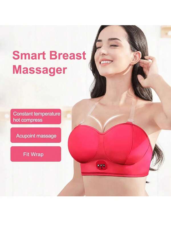 Smart Heating Breast Massage Bra Electronic Udder Chest Massager For Breast With Hot Compress Vibration Function 40℃ Constant Temperature Red
