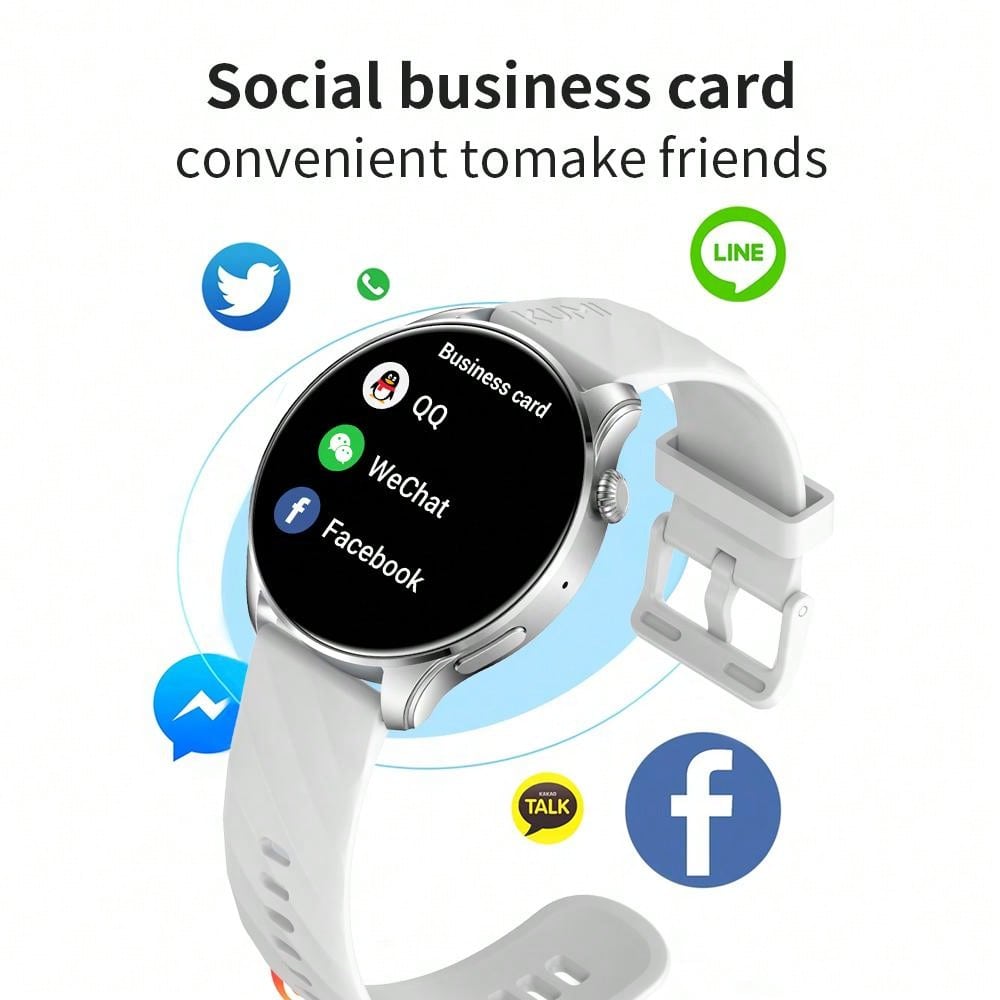 Smart Watch By KUMI, 1.43" AMOLED Screen Smartwatch With HD BT-Call, Multiple Information Reminder, Custom Button, AI Voice Assistant, 100+ Sport Modes, NFC Access Card, Blood Pressure & Heart Rate & Sleep & Blood Oxygen Monitoring, Sports Watch For Android & IOS Phones, IP68 Waterproof, Fitness Watch For Women Men