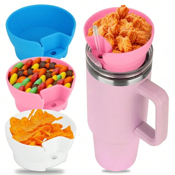 Snack Bowl Tumbler Snack Tray Water Cup 40oz With Handle Reusable Snack Ring With Straw Cover For Party Picnic Holiday