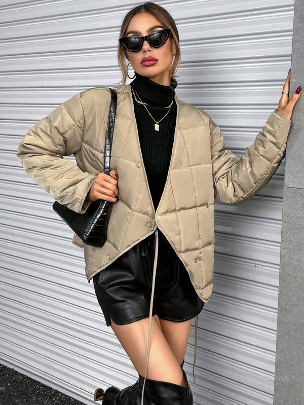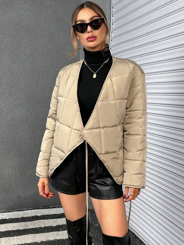 SHEIN Essnce Solid Asymmetrical Hem Puffer Coat