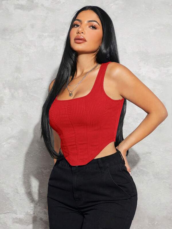 SHEIN SXY Solid Asymmetrical Hem Tank Top