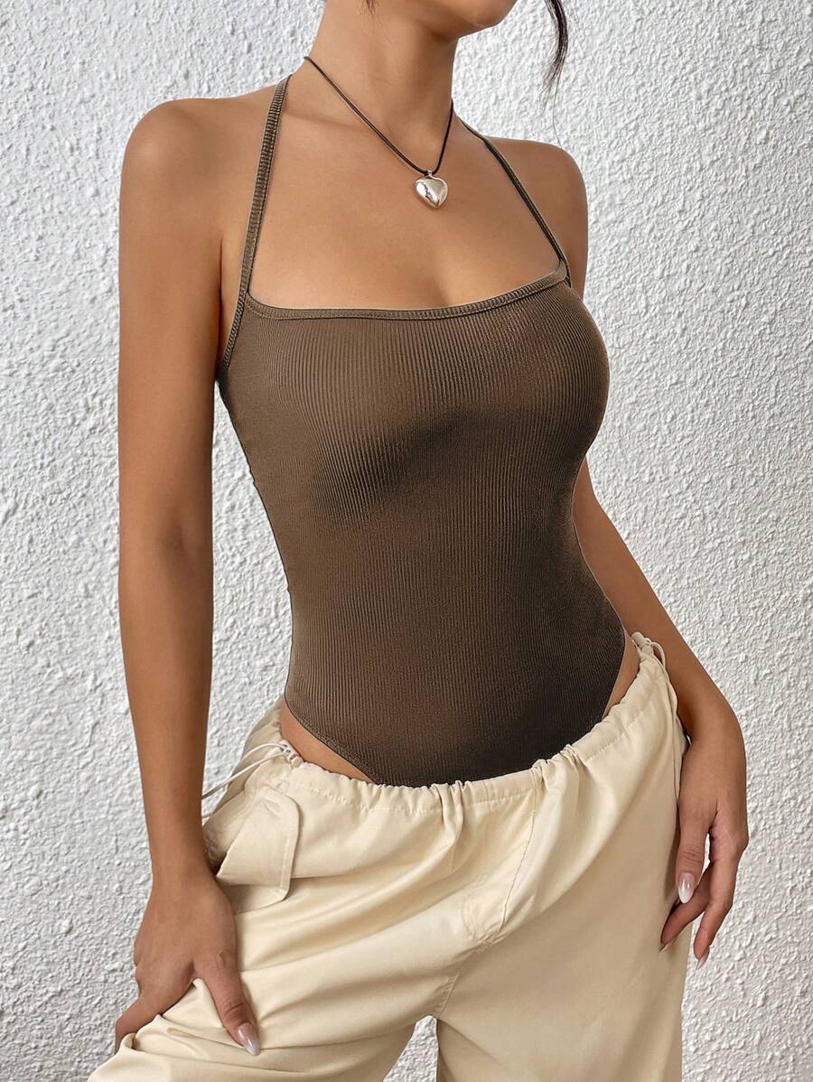 SHEIN EZwear Solid Backless Halter Bodysuit