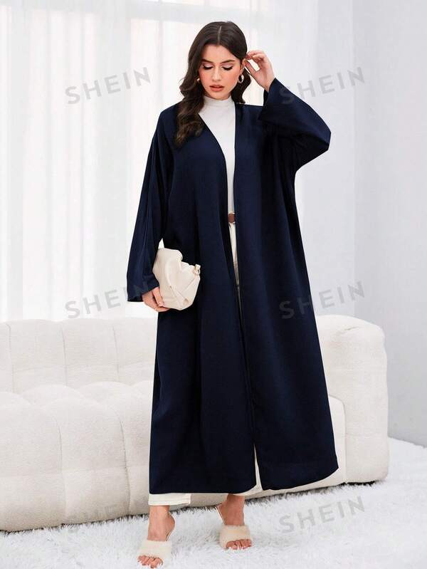 SHEIN Najma Solid Batwing Sleeve Open Front Abaya