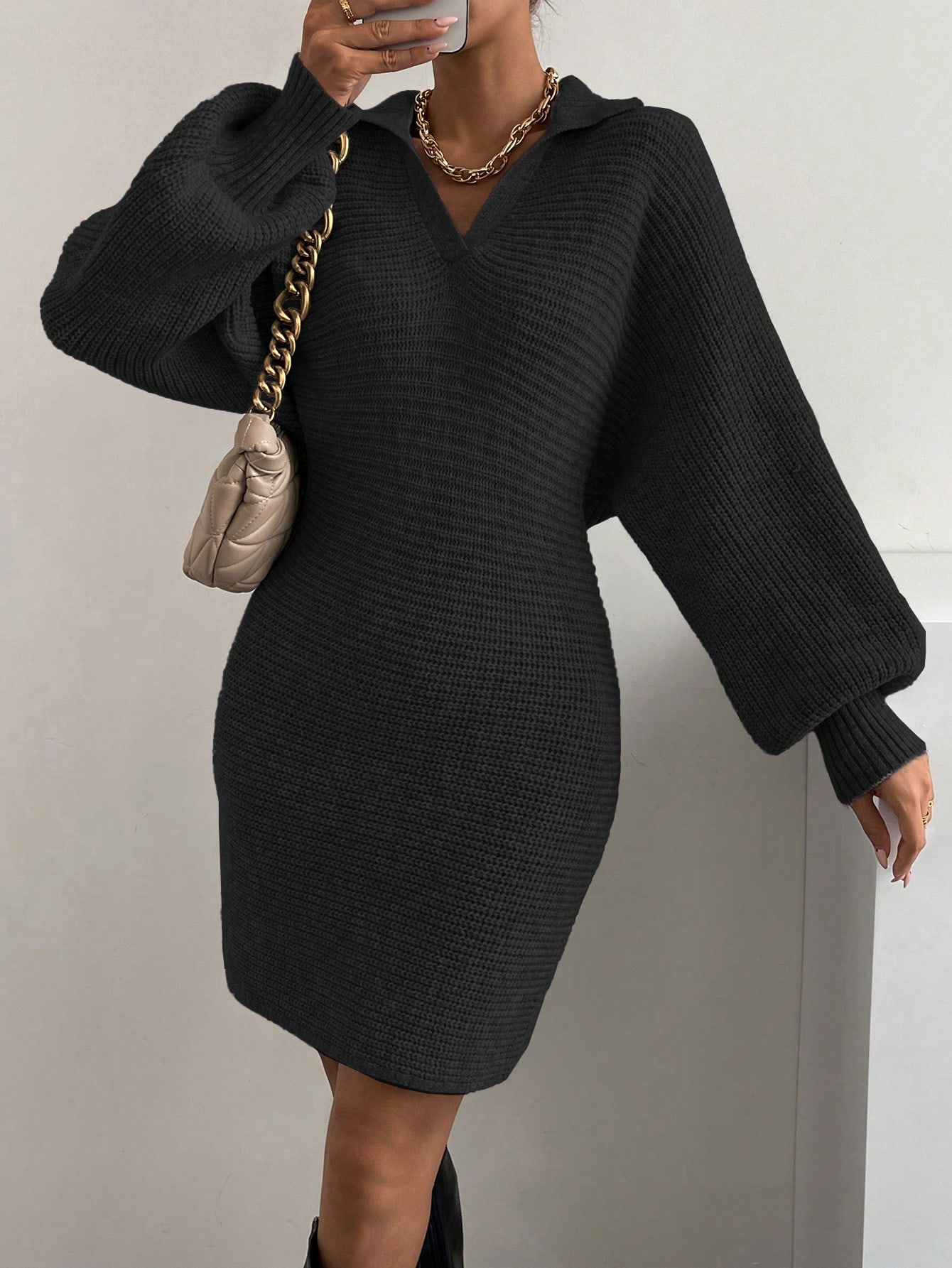 SHEIN Essnce Solid Batwing Sleeve Sweater Dress Without Belt