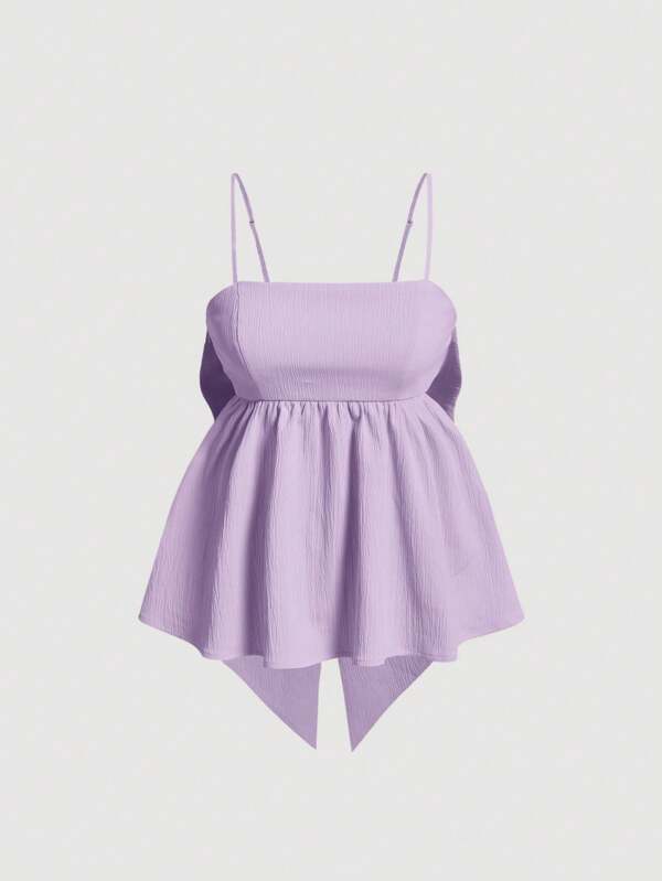 SHEIN MOD Solid Big Bow Back Ruffle Hem Cami Top