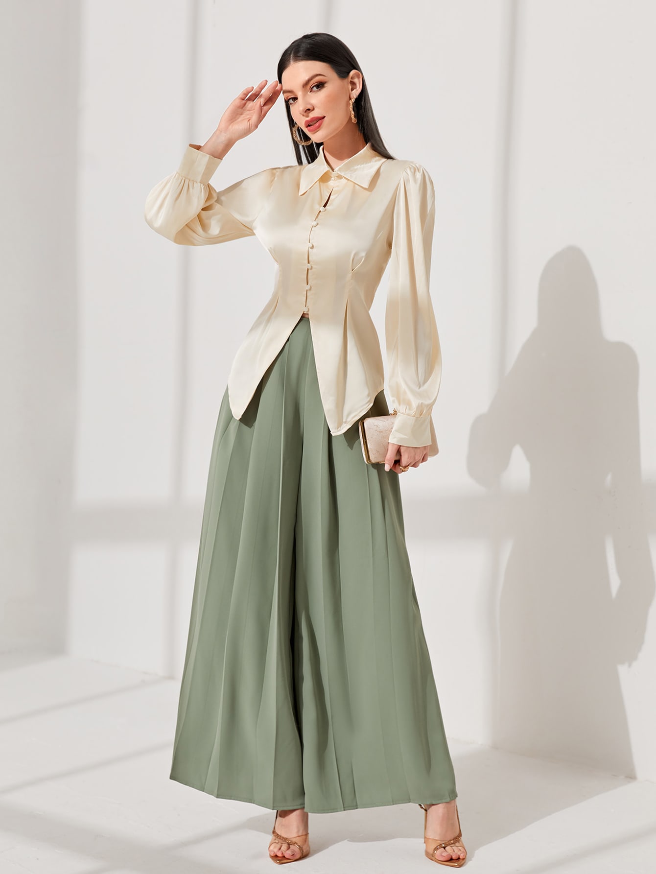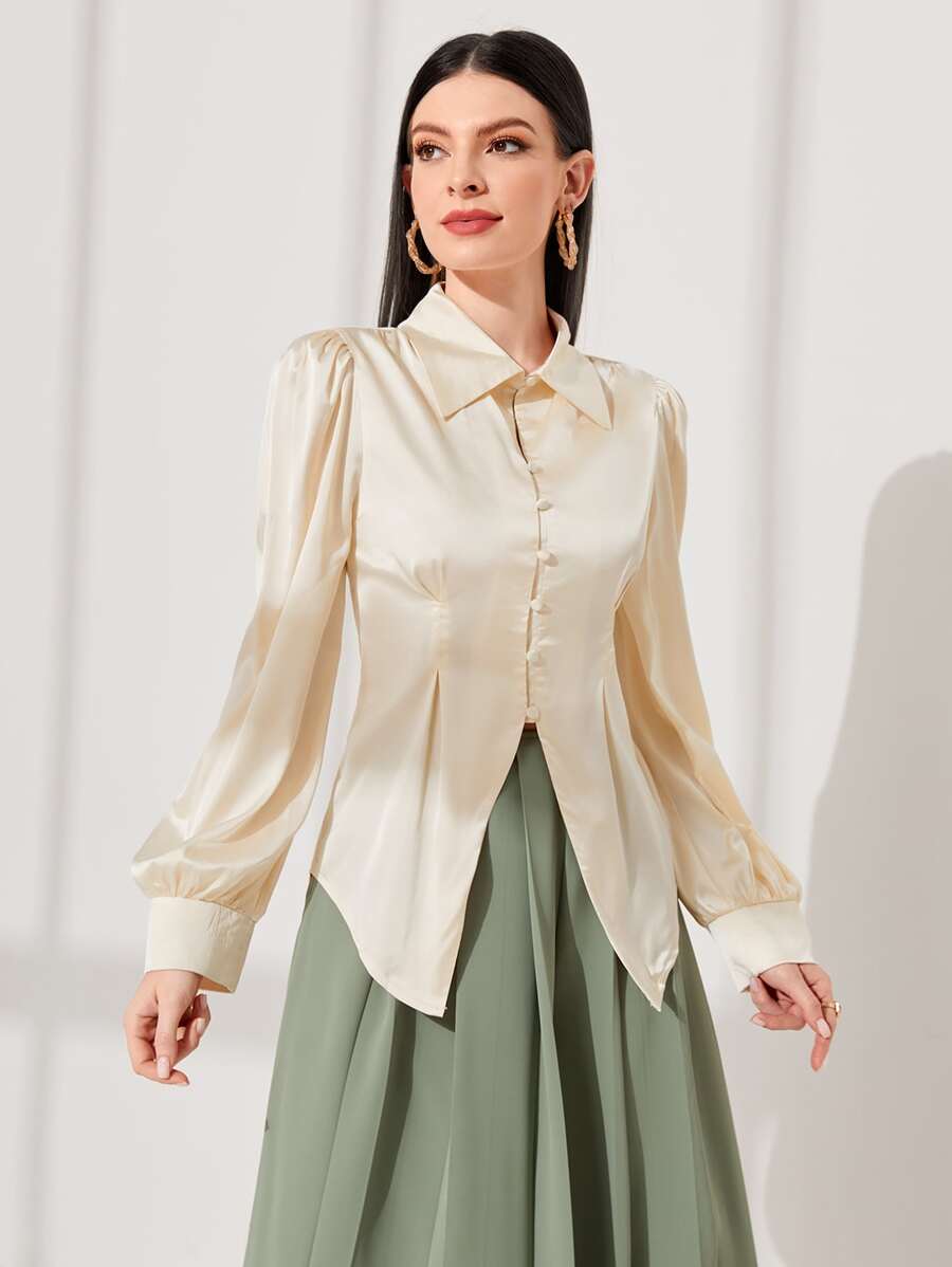 SHEIN Modely Solid Button Front Asymmetrical Hem Shirt