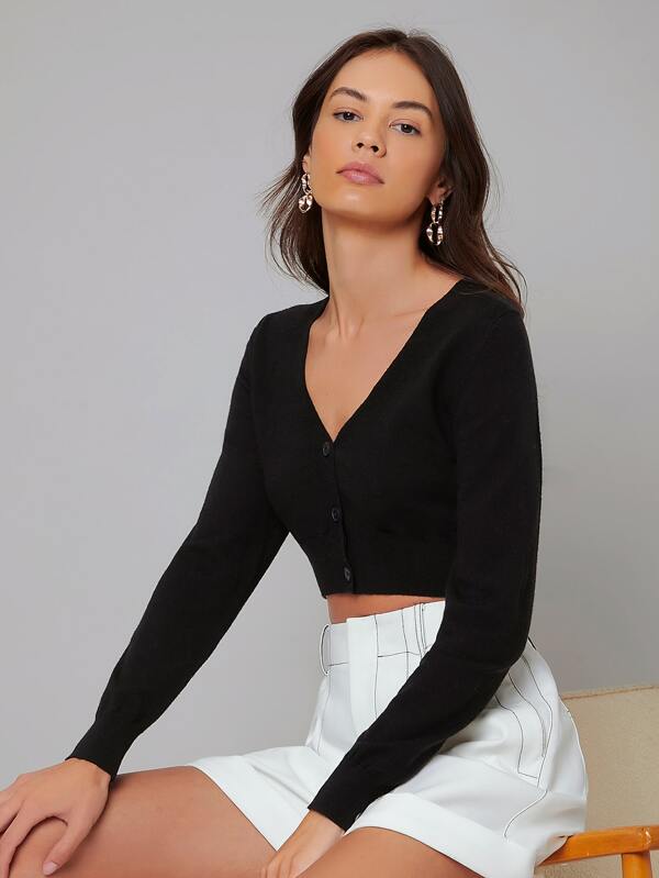 SHEIN BIZwear Solid Button Front Crop Cardigan Workwear