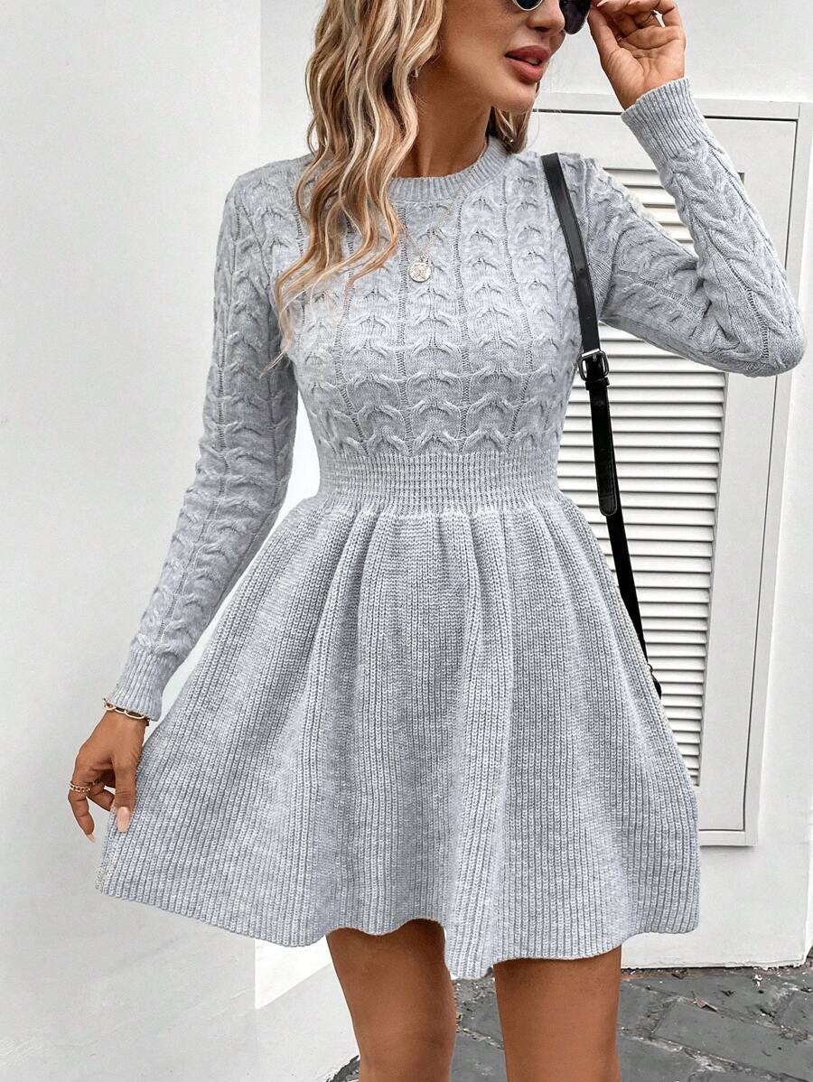 SHEIN LUNE Solid Cable Knit A-line Sweater Dress