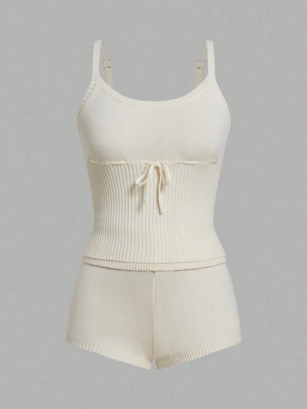 SHEIN Qutie Solid Cami Knit Top & Knit Shorts