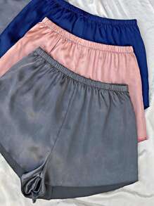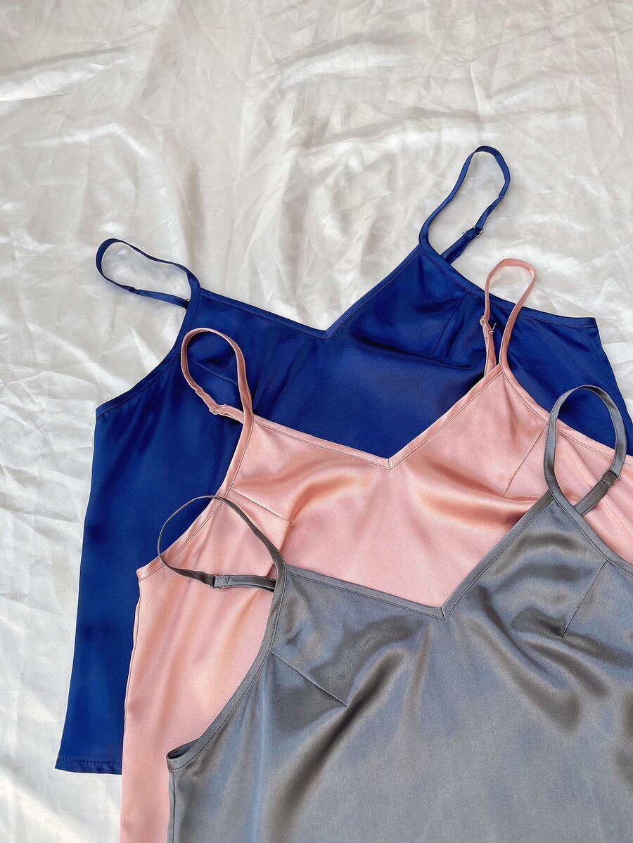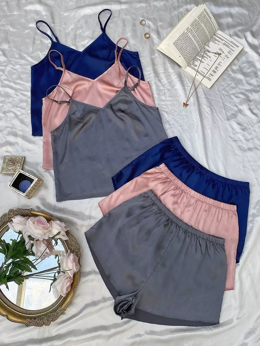 Solid Cami Satin 3 Top & 3 Shorts PJ Set