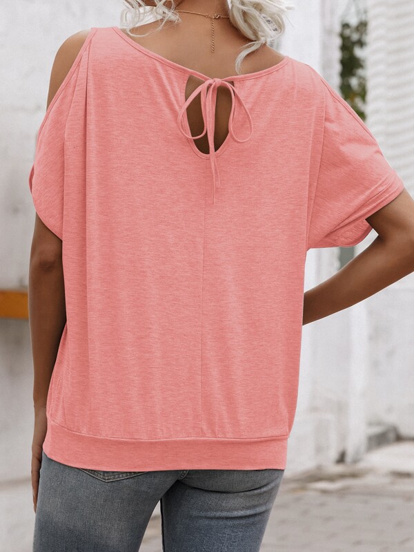 SHEIN LUNE Solid Cold Shoulder Tie Back Tee
