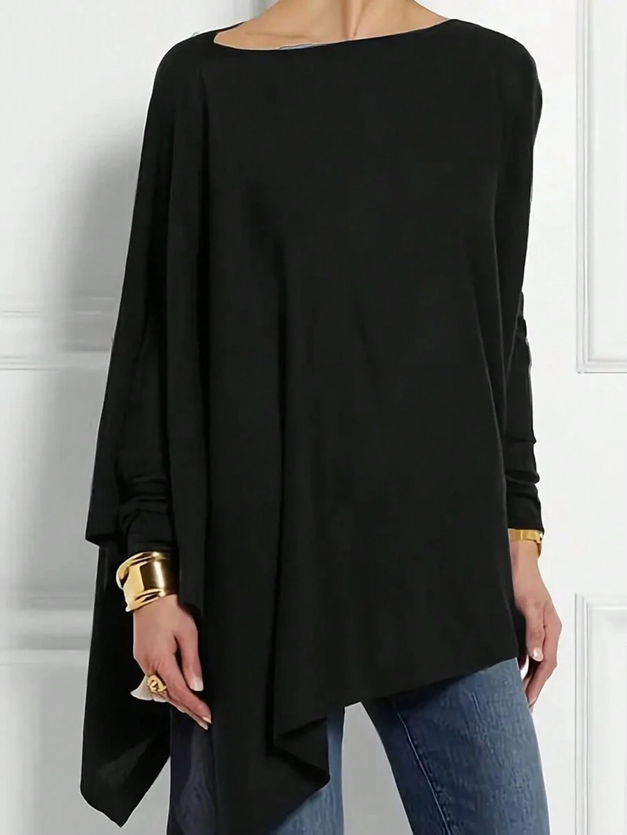 SHEIN Essnce Solid Color Asymmetrical Hem Round Neck Long Sleeve T-Shirt