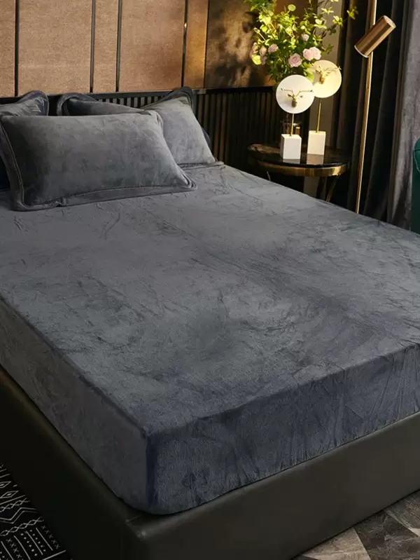 Solid Color Fitted Sheet, Dark Grey Soft Comfortable Bed Sheet For Bedroom