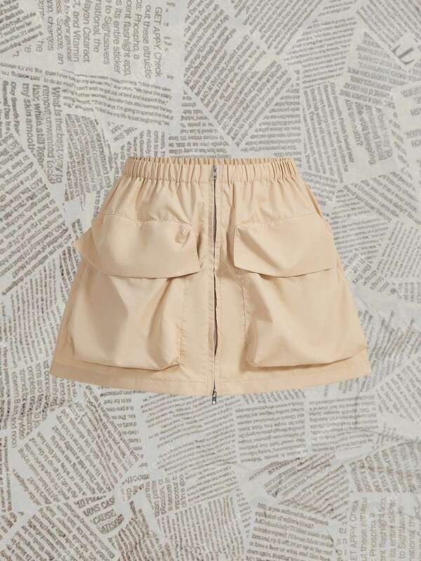 SHEIN EZwear Solid Color Flap Pocket Drawstring Waist Cargo Skirt