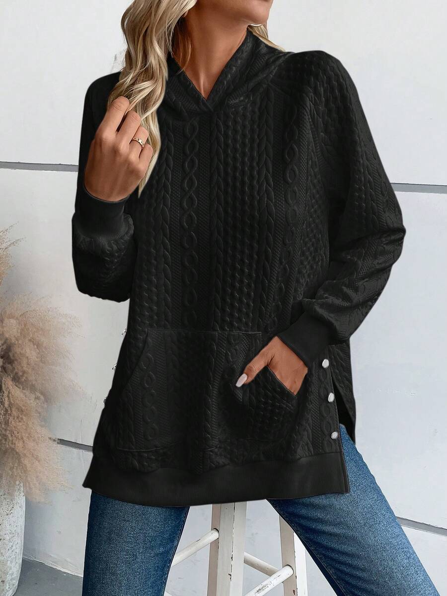 SHEIN Essnce Solid Color Hooded Sweatshirt With Raglan Sleeves