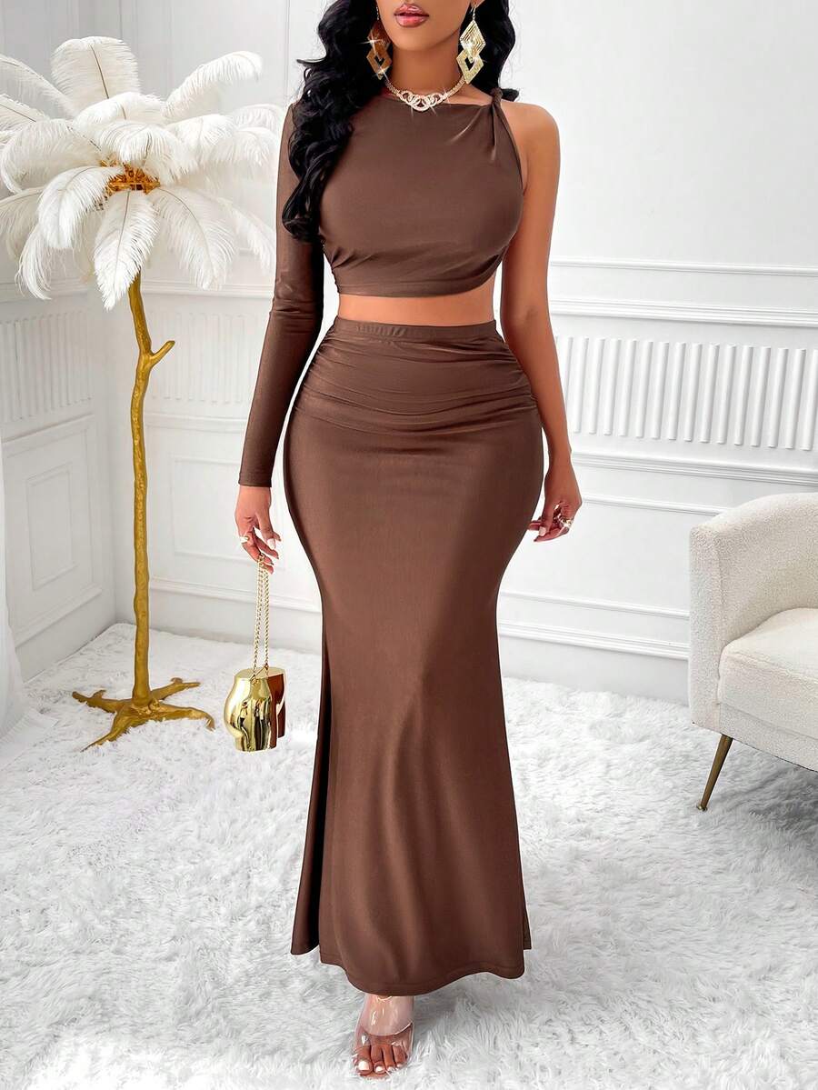 SHEIN Slayr Solid Color Irregular Collar Top And Skirt Two Piece Set