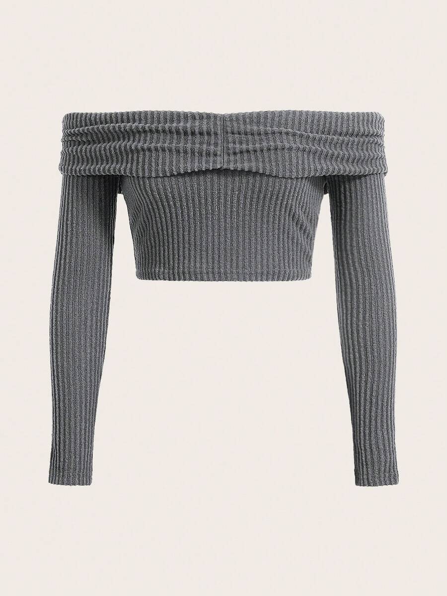 SHEIN ICON Solid Color Off-Shoulder Cropped T-Shirt