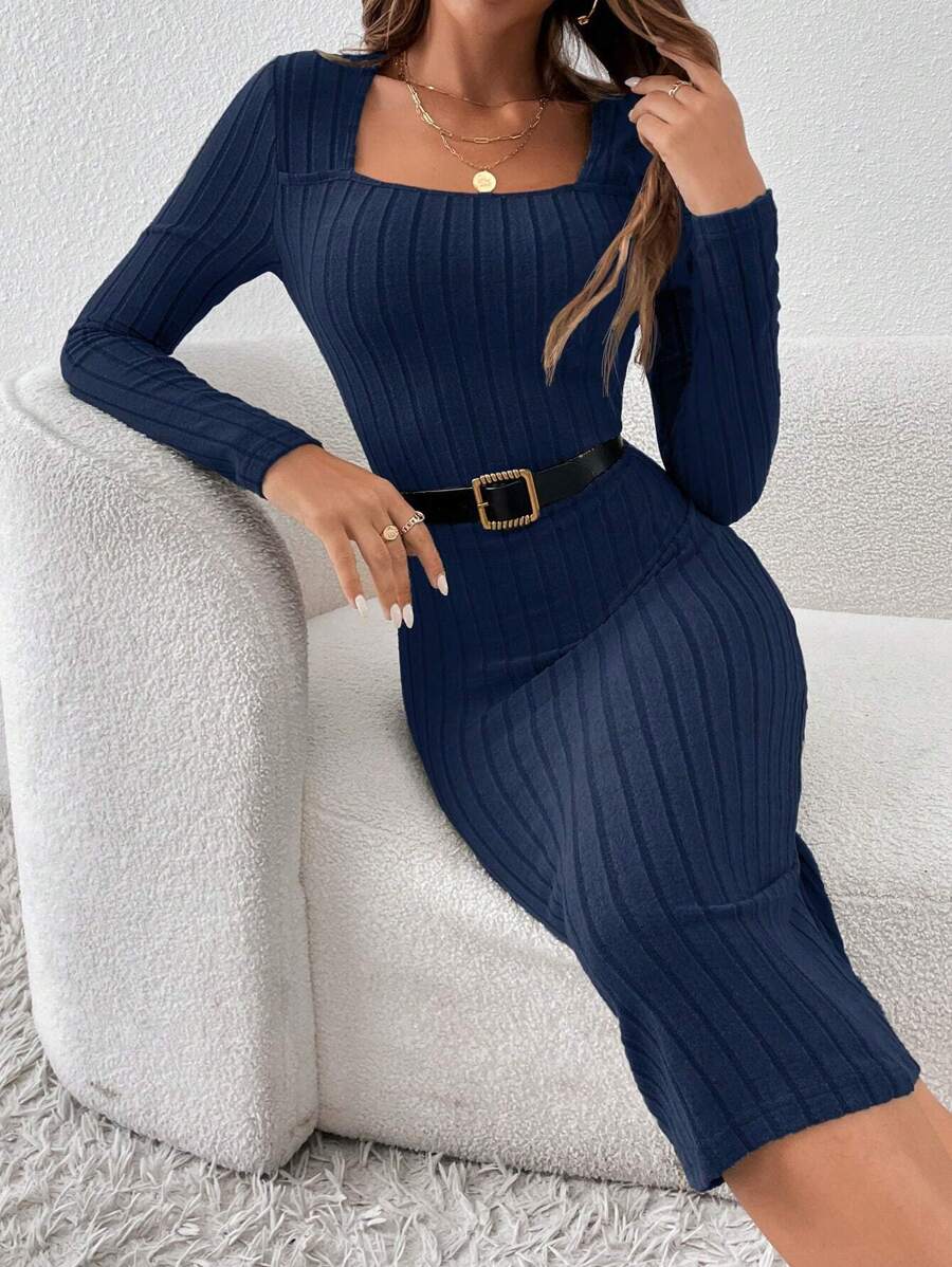 SHEIN Essnce Solid Color Ribbed Knitted Slim Fit Dress