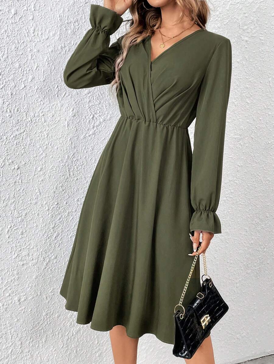 SHEIN Frenchy Solid Color Ruffle Sleeve Dress
