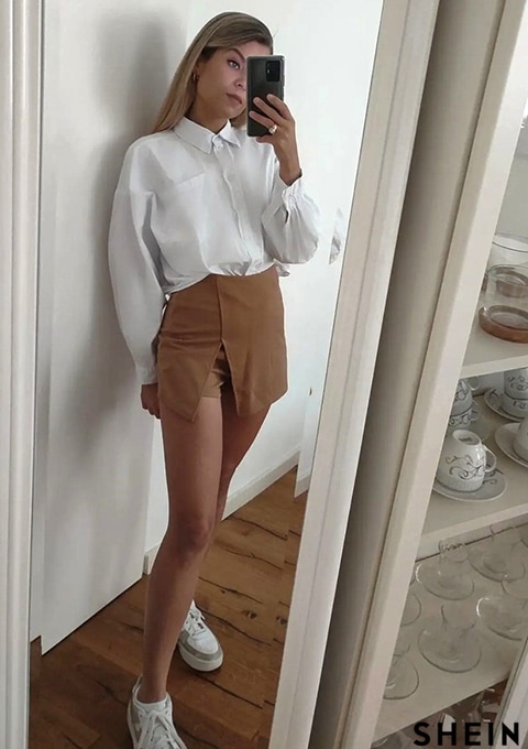 SHEIN SXY Solid Color Split Hem Skorts