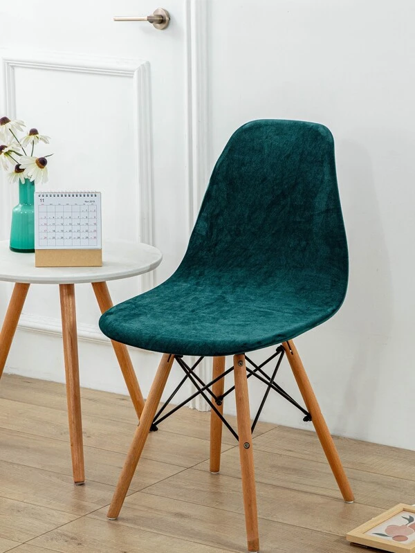 Solid Color Stretch Chair Slipcover, Green Simple Polyester Chair Cover For Dining Room