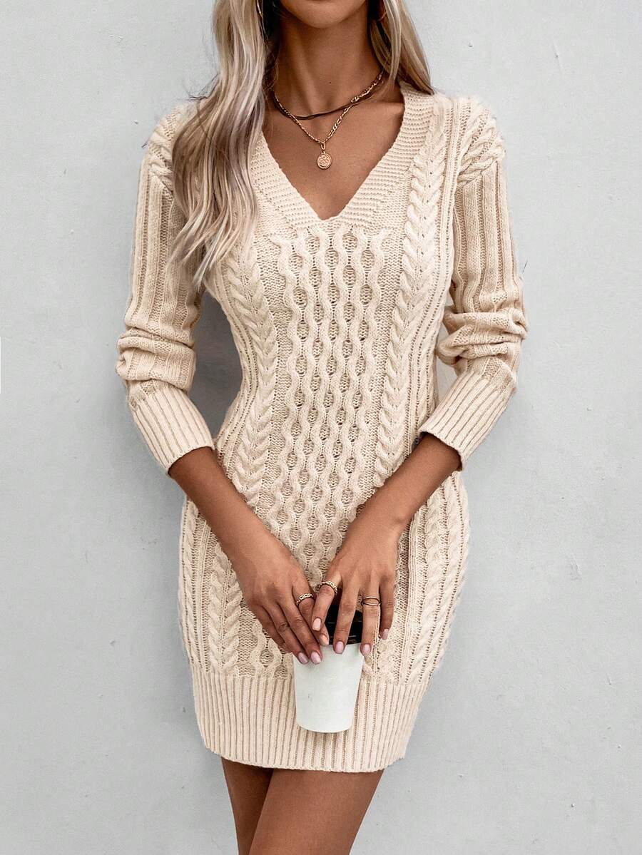 SHEIN LUNE Solid Color Sweater Dress (belt Is Not Included)