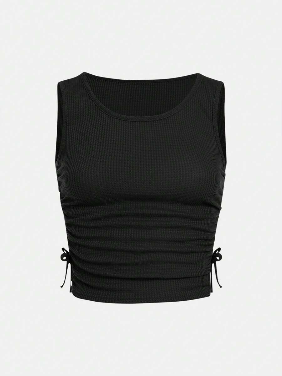 SHEIN Solid Color Vest Top With Side Drawstring For Teen Girls, Summer