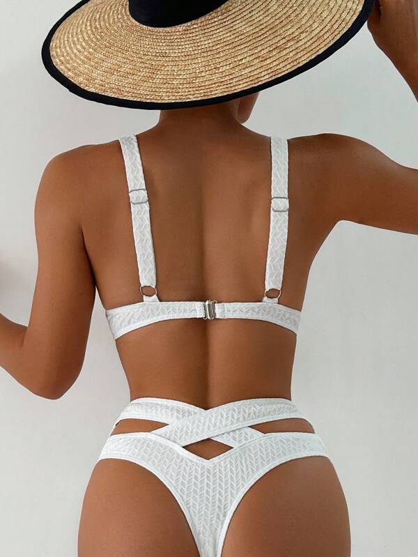 SHEIN Swim Chicsea Solid Colored Textured Swimsuit Set