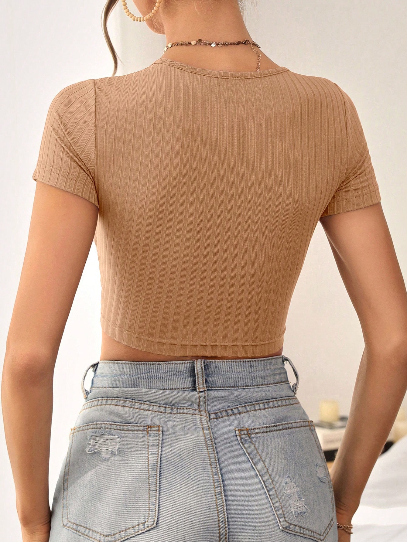 SHEIN Privé Solid Cross Wrap Crop Tee