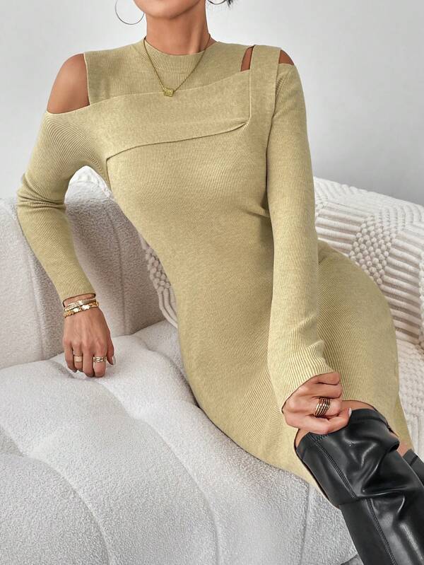 SHEIN Essnce Solid Cut Out Bodycon Sweater Dress