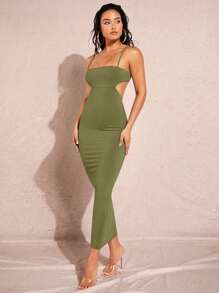 SHEIN BAE Solid Cut Out Open Back Cami Bodycon Dress
