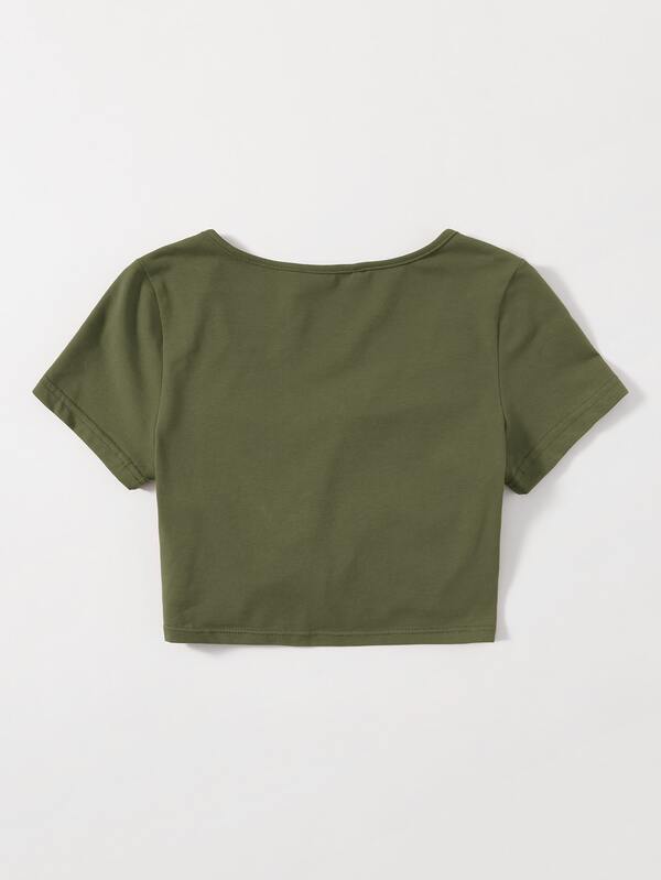 SHEIN Qutie Solid Drawstring Ruched Tee