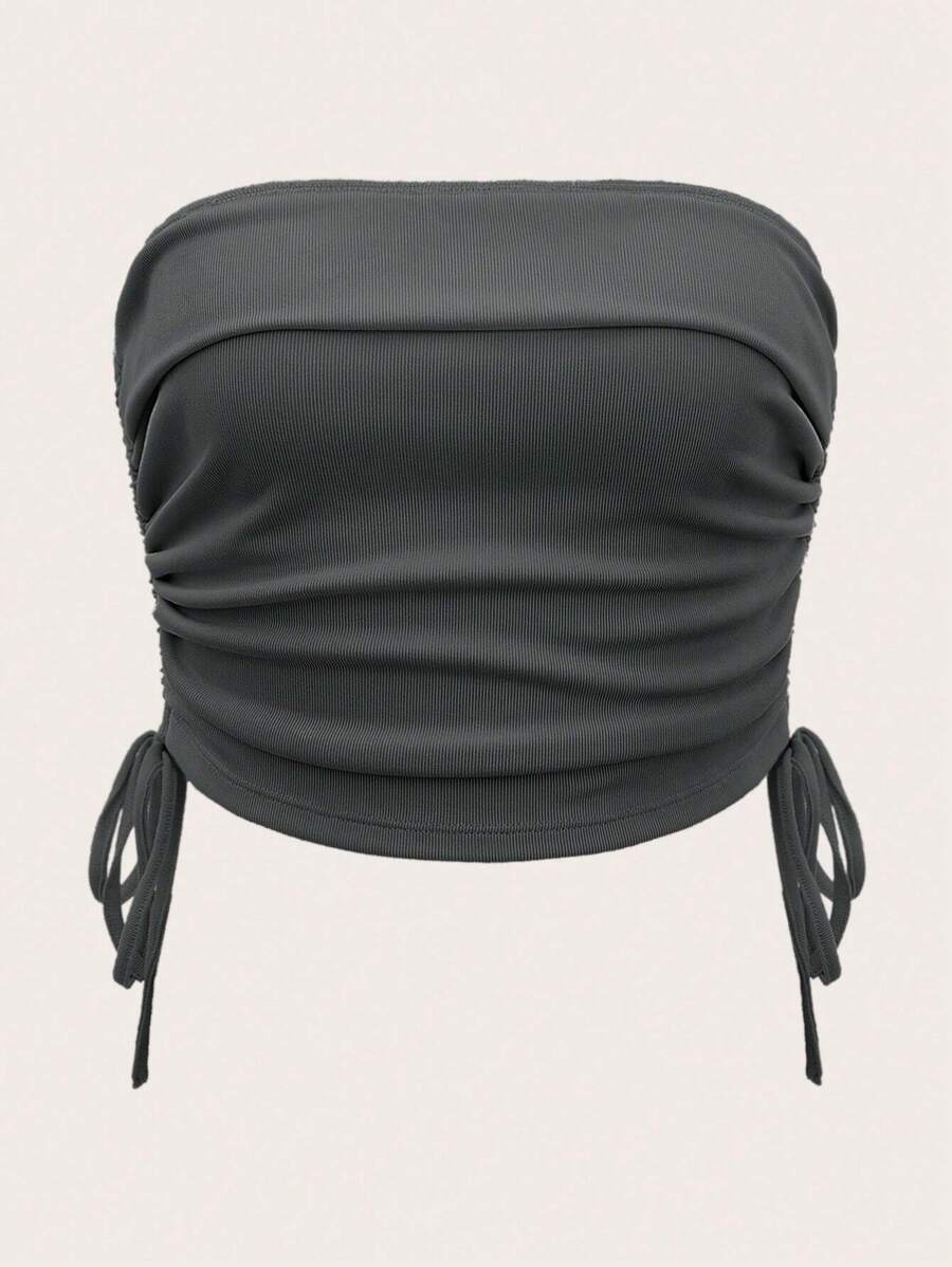 SHEIN ICON Solid Drawstring Side Tube Top