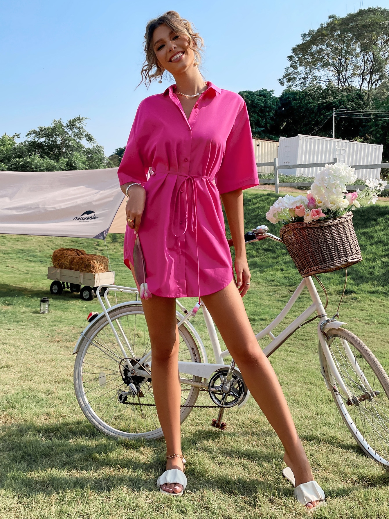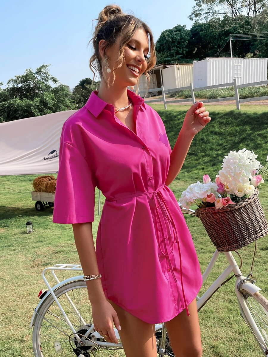 SHEIN Unity Solid Drop Shoulder Belted Shirt