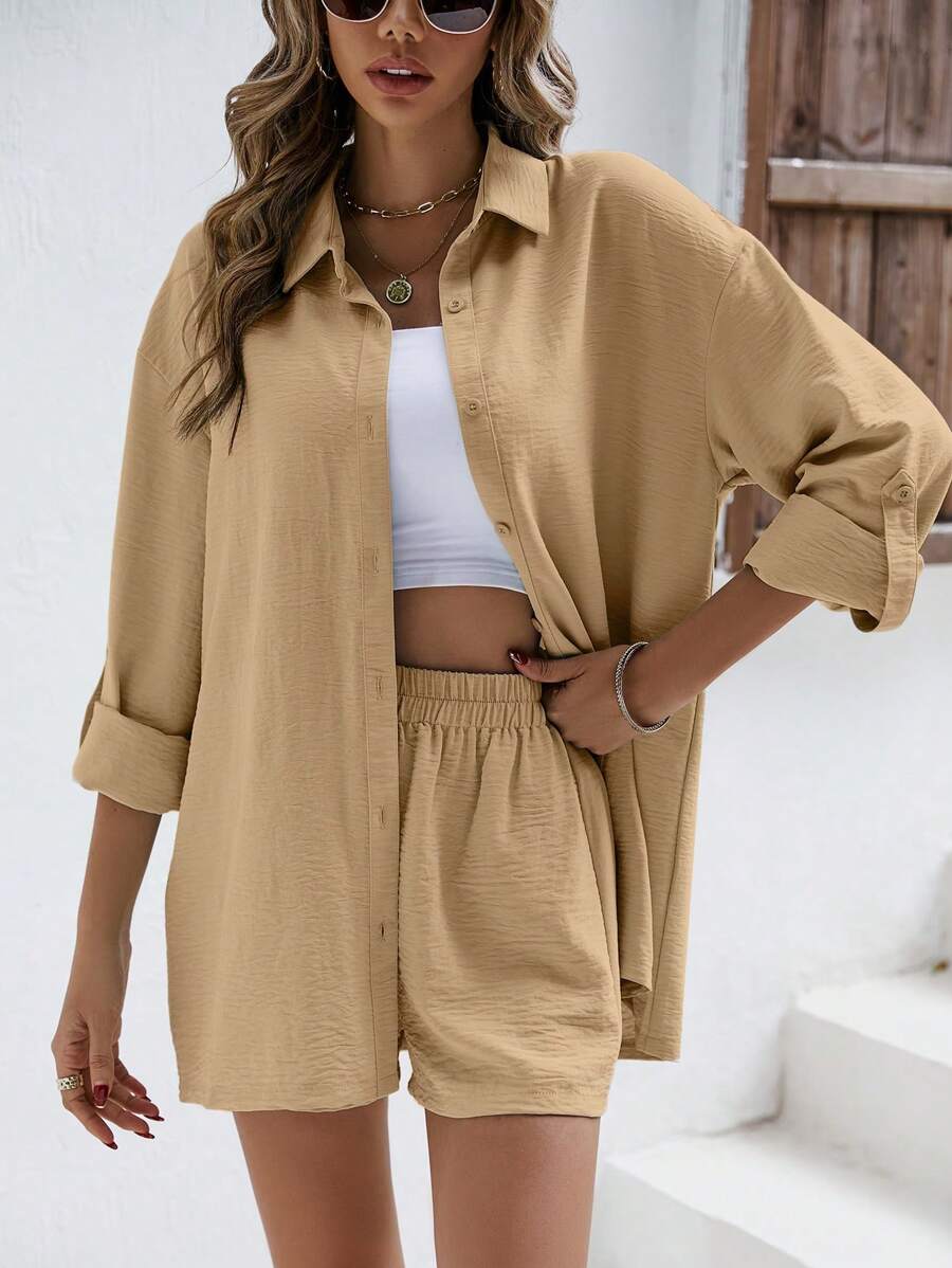SHEIN Unity Solid Drop Shoulder Shirt & Shorts