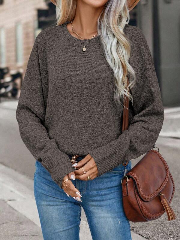 SHEIN LUNE Solid Drop Shoulder Sweater