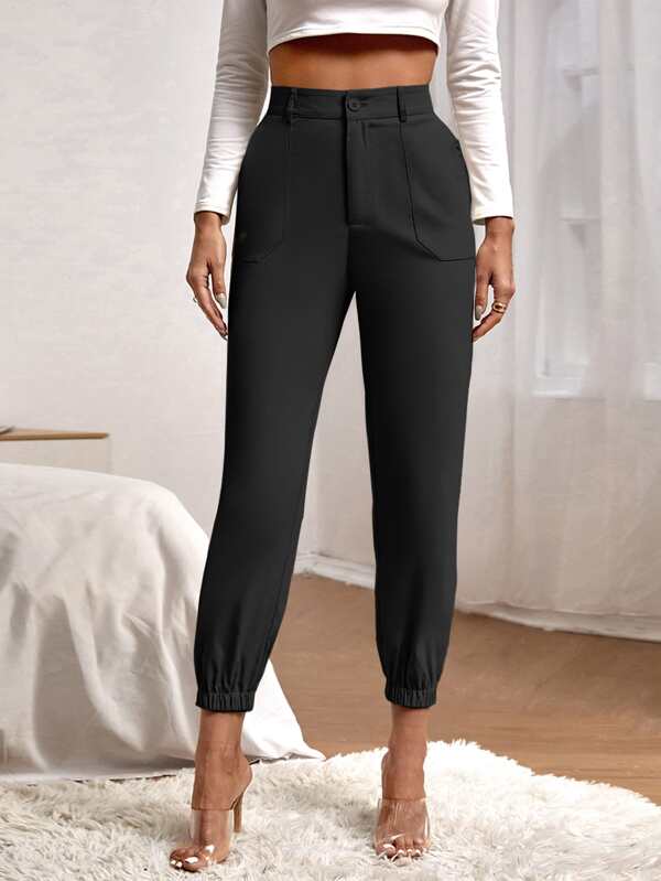 SHEIN Essnce Solid Dual Pockets Cropped Carrot Pants