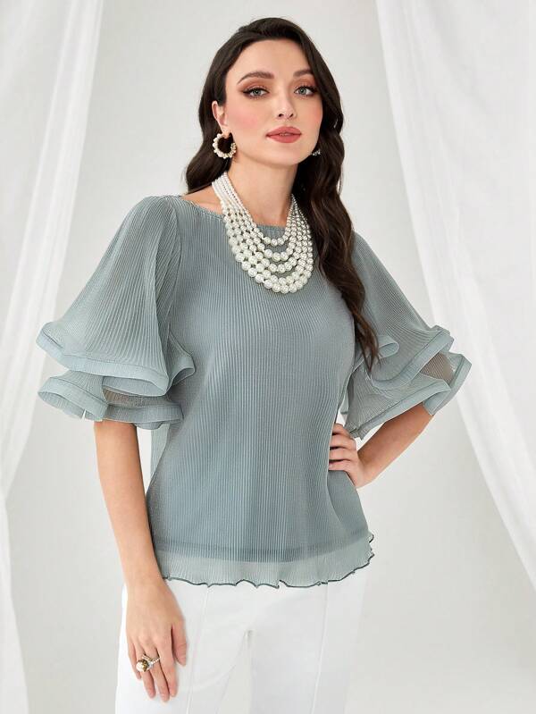 SHEIN Modely Solid Flare Sleeve Blouse