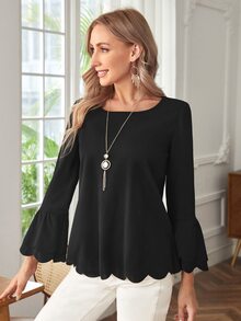 EMERY ROSE Solid Flounce Sleeve Scallop Trim Tee