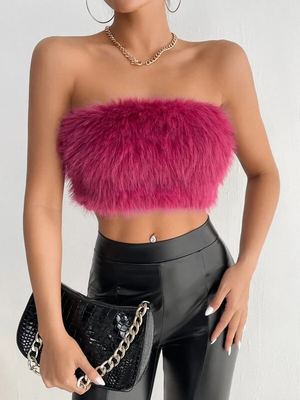 SHEIN PETITE Solid Fuzzy Crop Tube Top