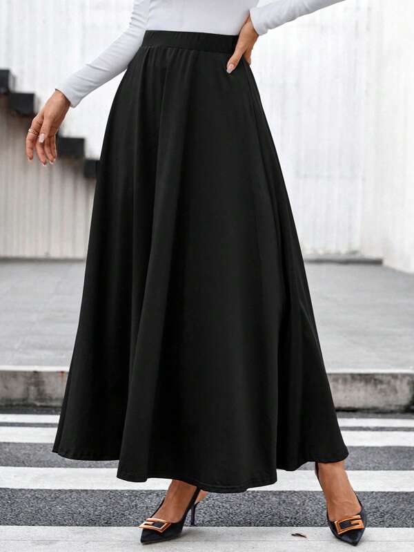 SHEIN Clasi Solid High Waist Flare Skirt