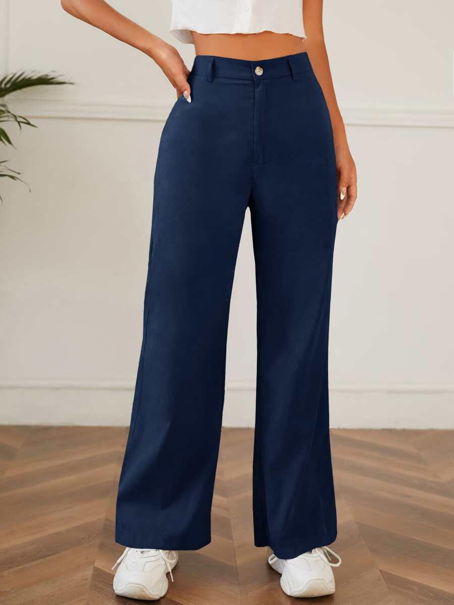 SHEIN PETITE Solid High Waist Pants