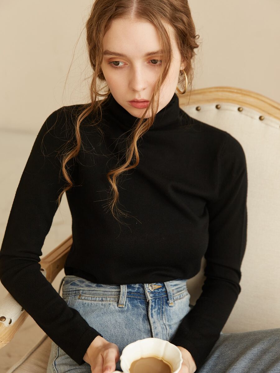 Knit Mix Solid High Waist Sweater