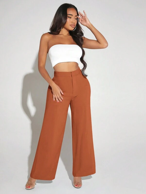 SHEIN SXY Solid High Waist Wide Leg Pants