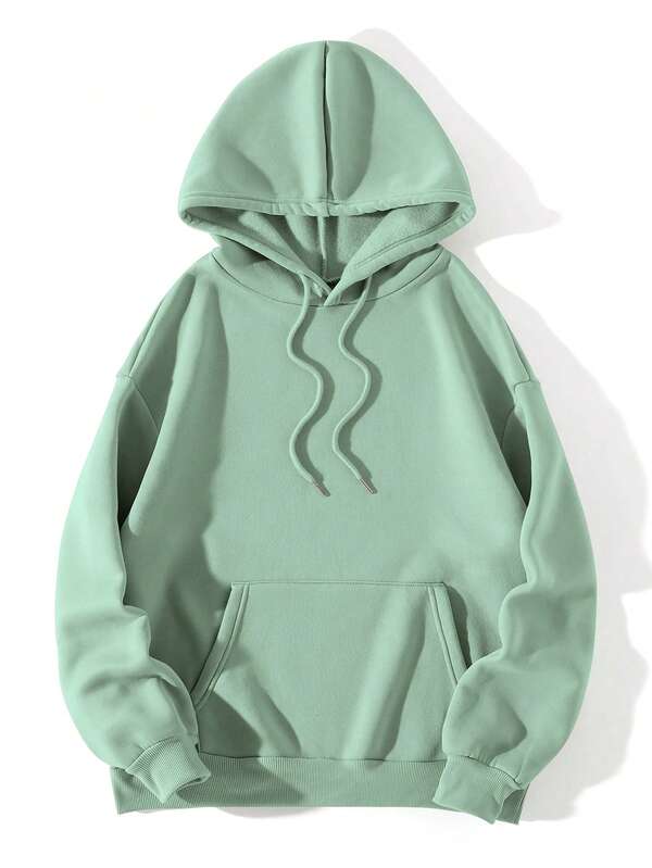 Solid Kangaroo Pocket Drawstring Thermal Lined Hoodie