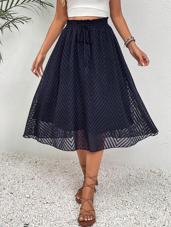 SHEIN LUNE Solid Knot Front Paperbag Waist Skirt