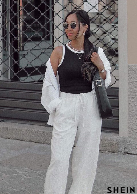 SHEIN EZwear Solid Knot Waist Wide Leg Pants