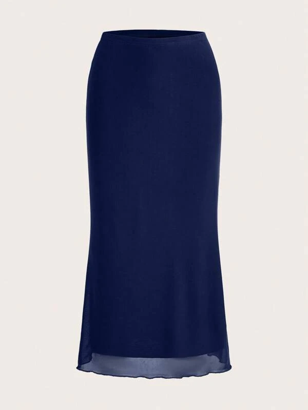 SHEIN EZwear Solid Lettuce Trim Mermaid Hem Skirt