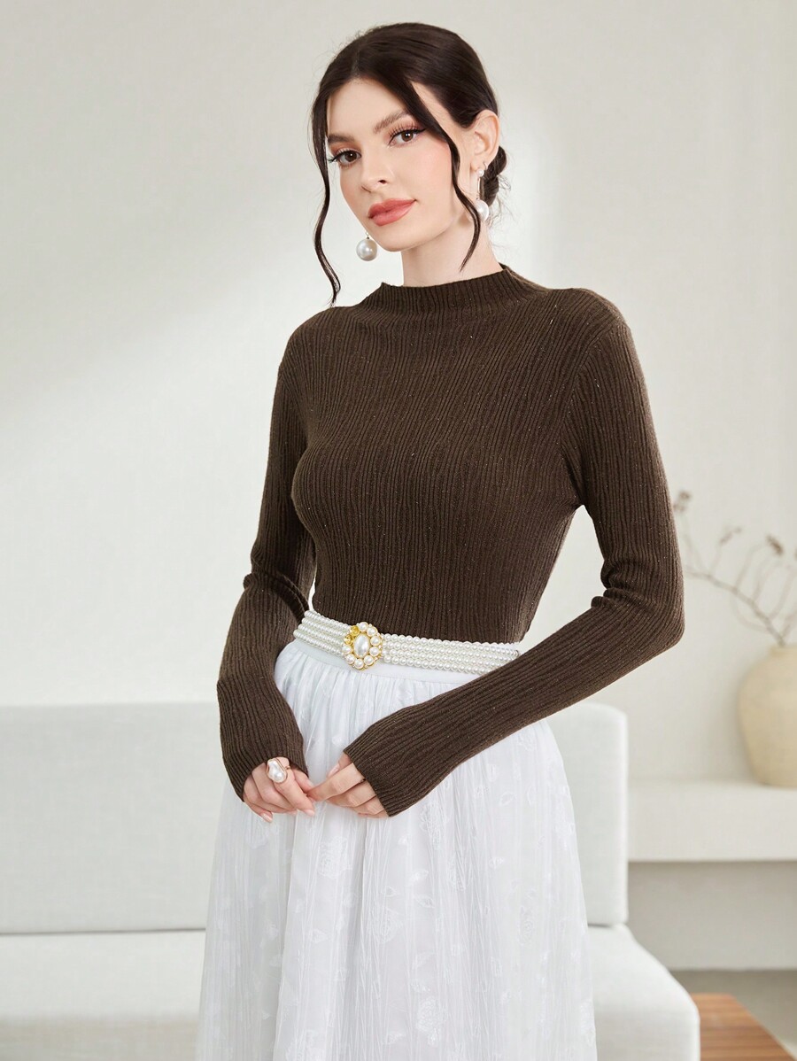 SHEIN Modely Solid Mock Neck Sweater